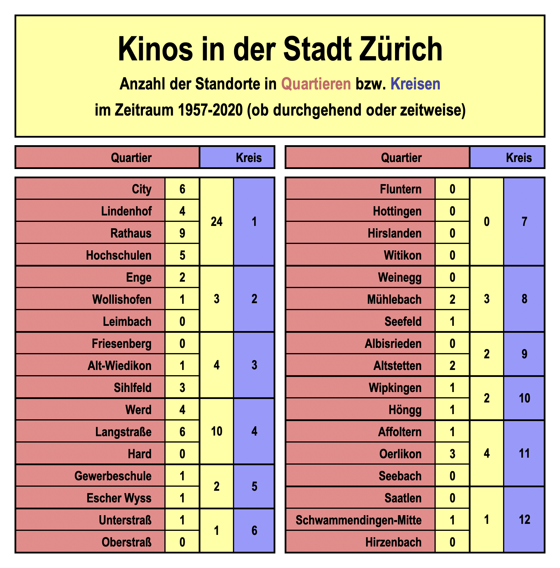 STANDORTE VON KINOS IN DER STADT ZÜRICH IM ZEITRAUM 1957-2020 |